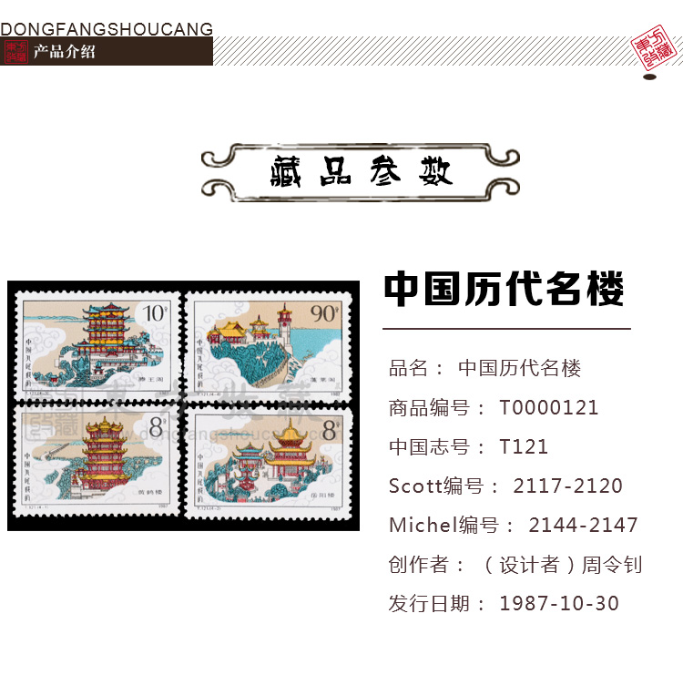东方收藏 T121 中国历代名楼邮票 全新品相 邮费自理!
