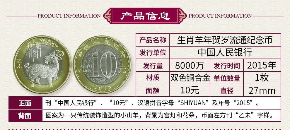 第二轮十二生肖纪念币 2015羊年纪念币 单枚