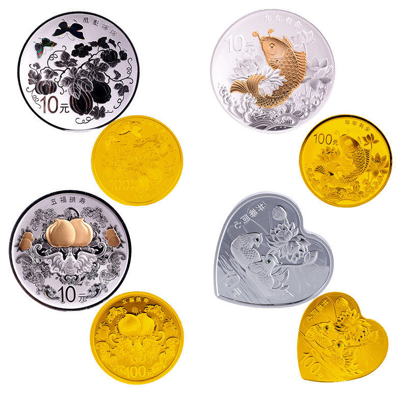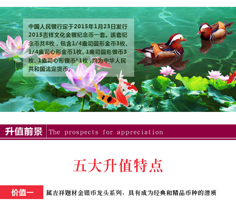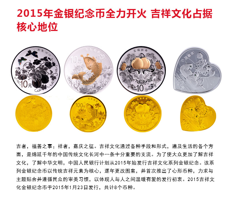 2015吉祥文化金银纪念币 8枚套装 4金+4银