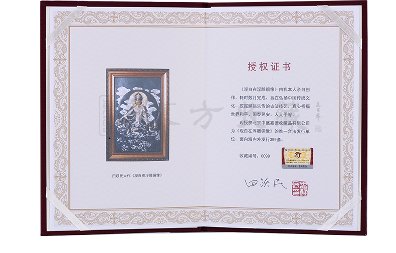 东方收藏 观自在观世音浮雕铜像(赠大师田跃民画)