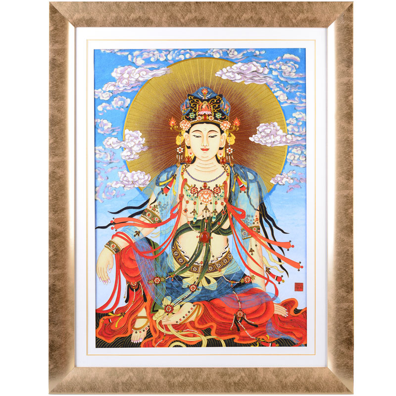 东方收藏《大吉祥》水月观音宝像掐丝珐琅画 张同禄大师名作 名家书画 纯手工掐丝珐琅