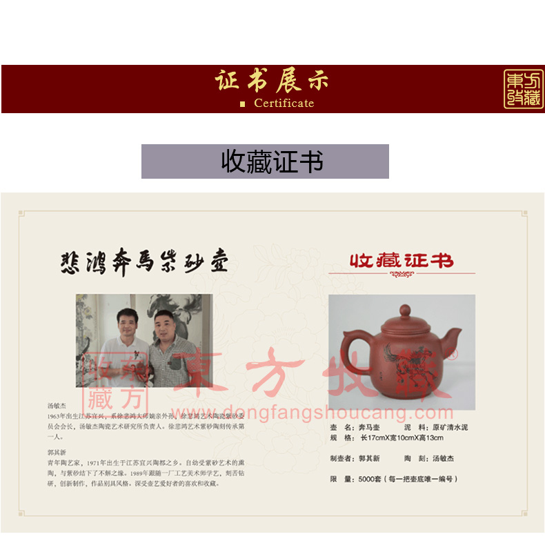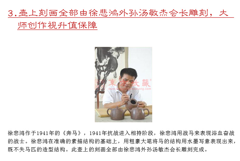 东方收藏 悲鸿奔马紫砂壶
