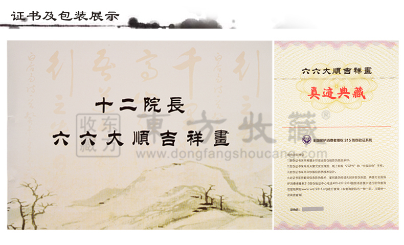 东方收藏承诺遵守商业道德,诚信为本、依法经营,接受会员监督。东方收藏所有藏品均有相关机构出具的证书,如果您发现虚假藏品,即可假一赔十。