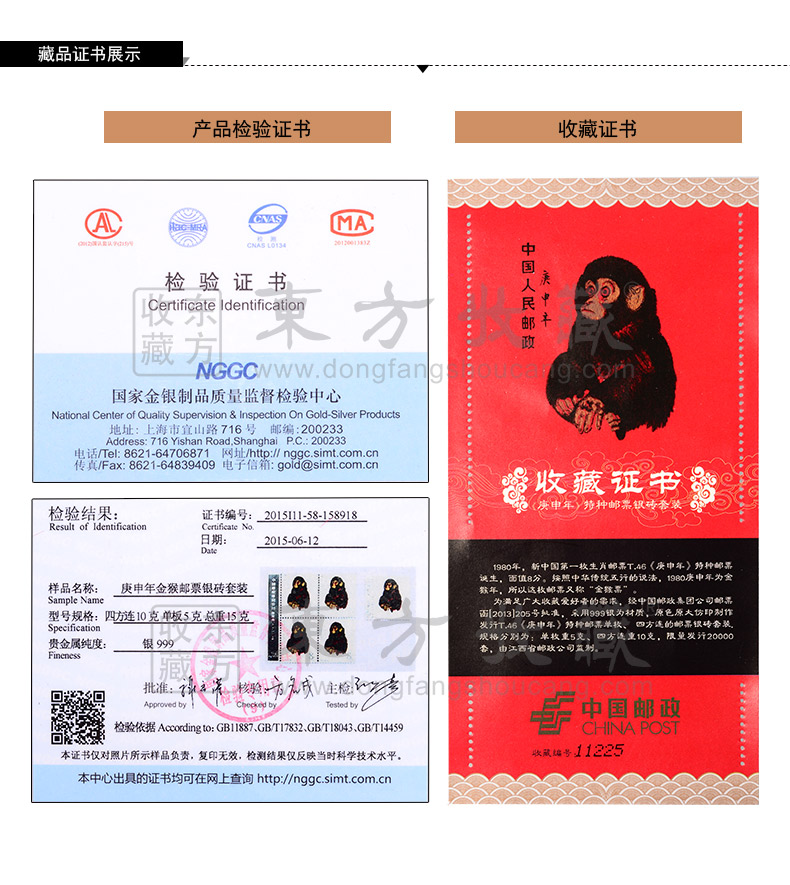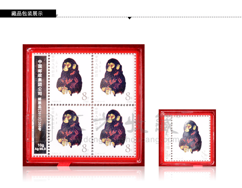 东方收藏 1980庚申年金猴邮票银砖套装 猴年邮票