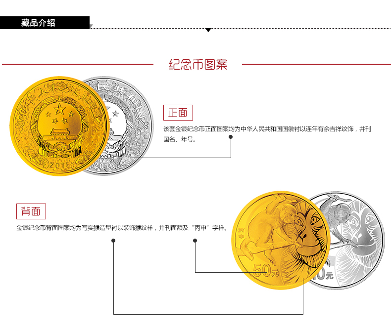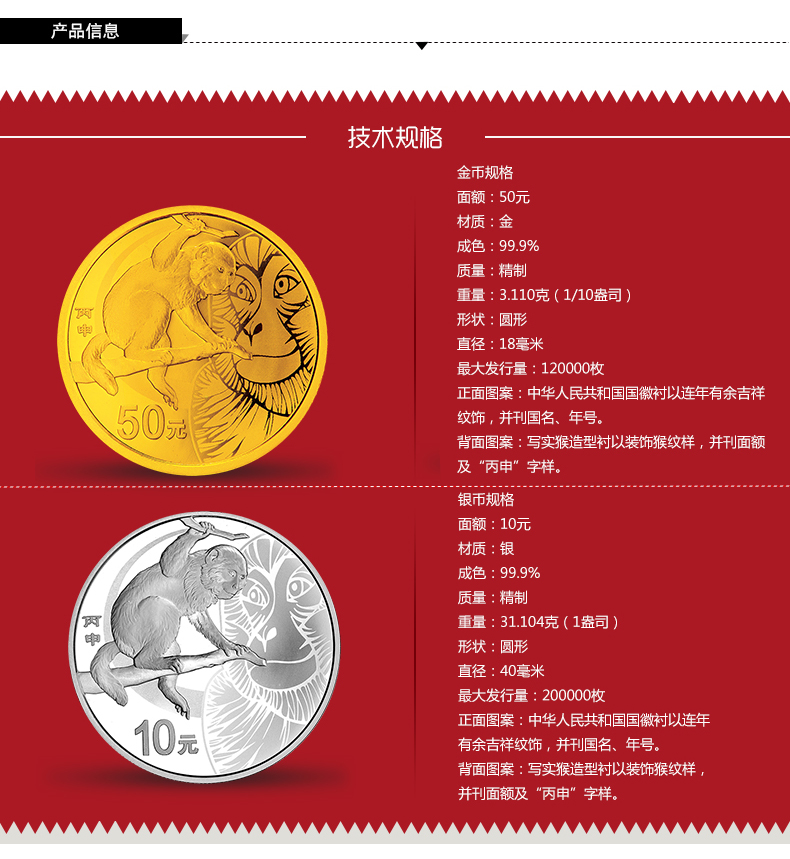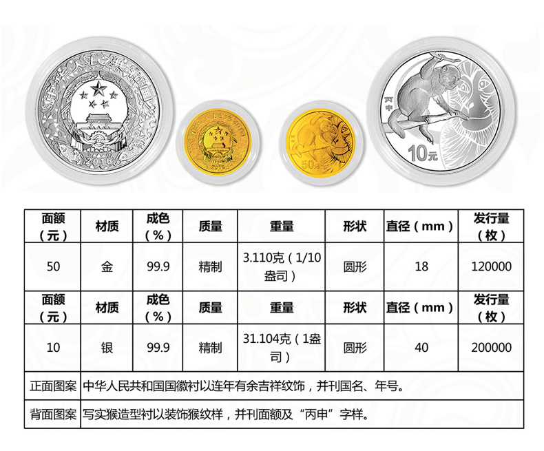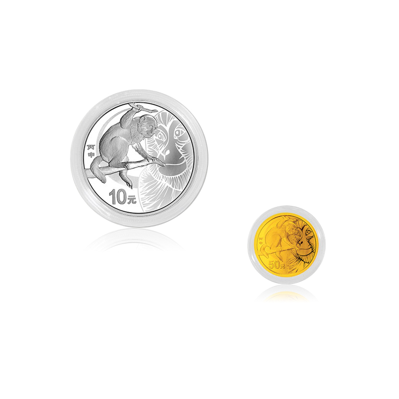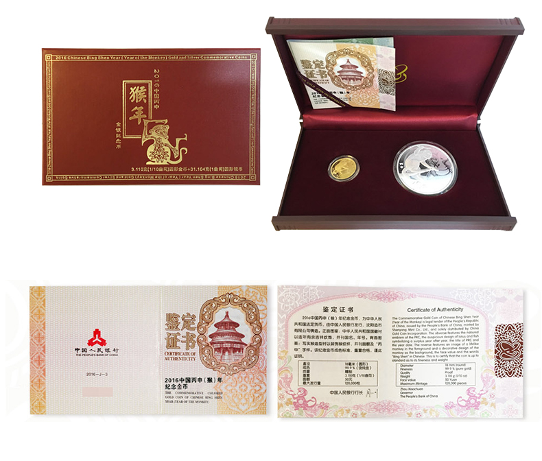 2016猴年生肖金银纪念币 圆形本色金银纪念币 1金1银