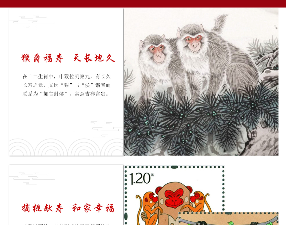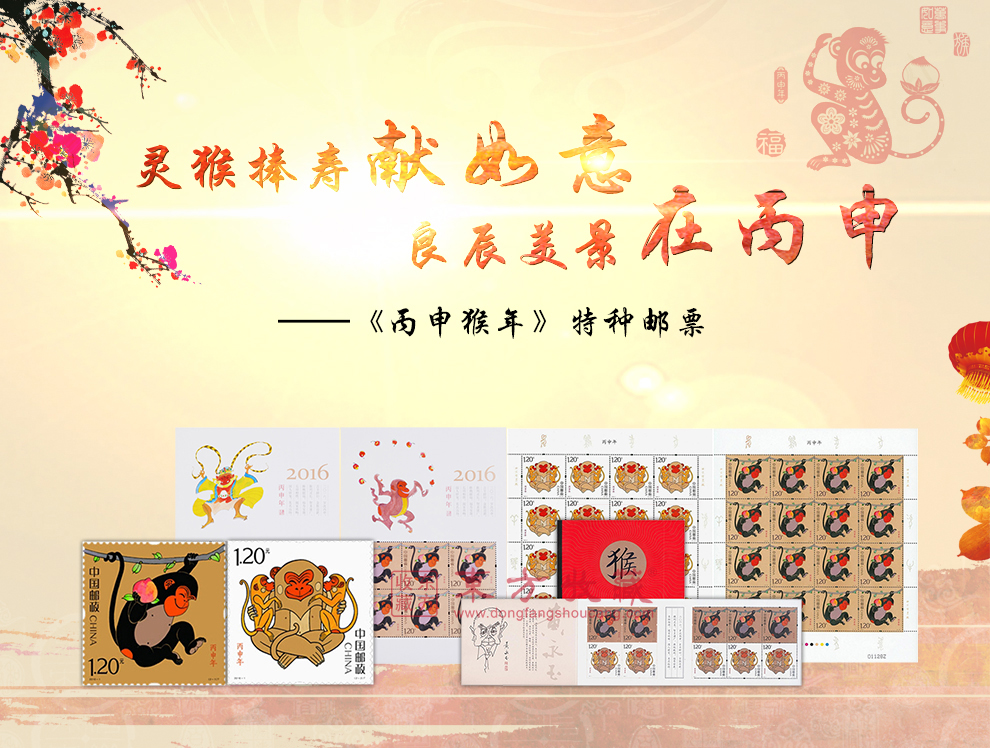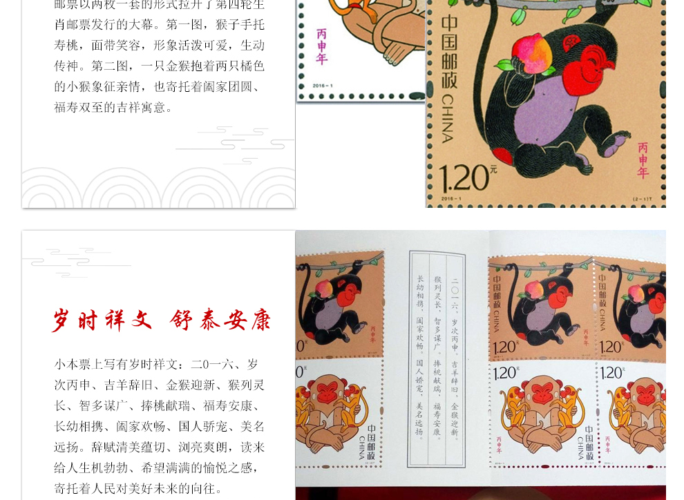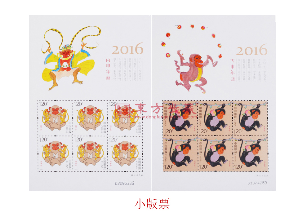 第四轮十二生肖邮票 2016-1《丙申年》特种邮票 2016猴年邮票 小版票 邮费自理!