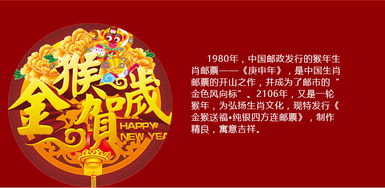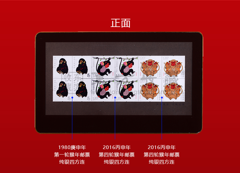 2016年金猴送福纯银四方连邮票 猴年邮票
