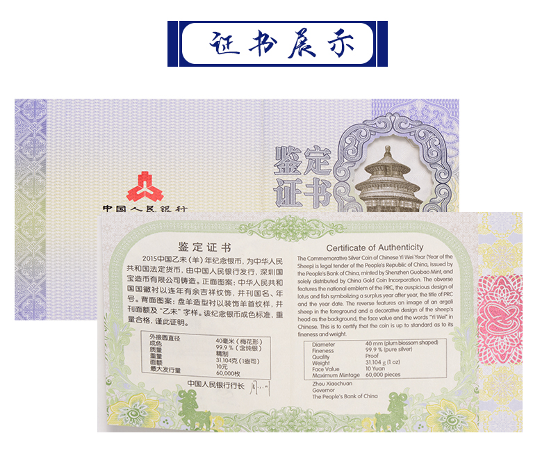 2015羊年生肖金银纪念币 梅花形1盎司银币