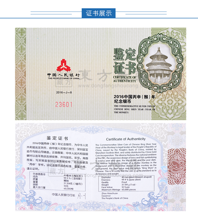 东方收藏承诺遵守商业道德,诚信为本、依法经营,接受会员监督。东方收藏所有藏品均有相关机构出具的证书,如果您发现虚假藏品,即可假一赔十。