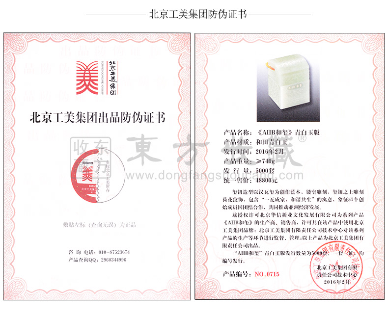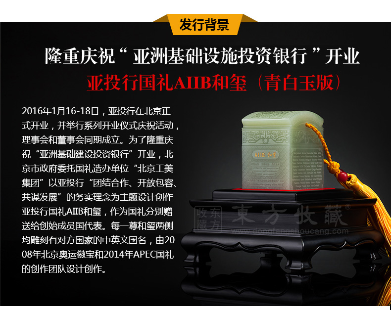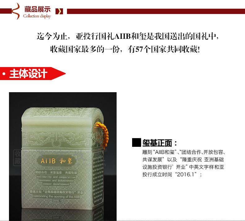 北京工美集团 AIIB和玺 亚投行和玺 亚投行玉玺 亚投行开业仪式国礼 AIIB玉玺 和田青白玉版