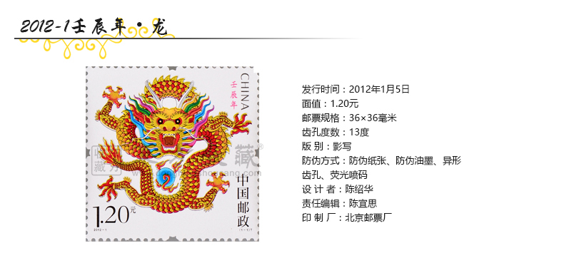 第三轮十二生肖邮票 2012龙年邮票 单枚